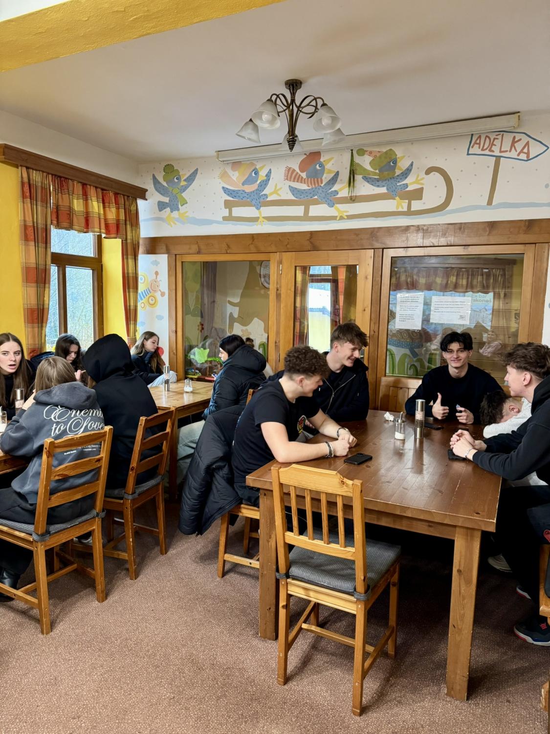 V neděli 22. 2. 2026 jsme s žáky naší školy, napříč třídami a ročníky, vyrazili na lyžařský výcvikový kurz do Janských Lázní. I letos jsme se ubytovali v již ověřeném a prověřeném penzionu Adélka, kde jsme strávili první chvíle u společného oběda, večeře a při hraní společenských her.