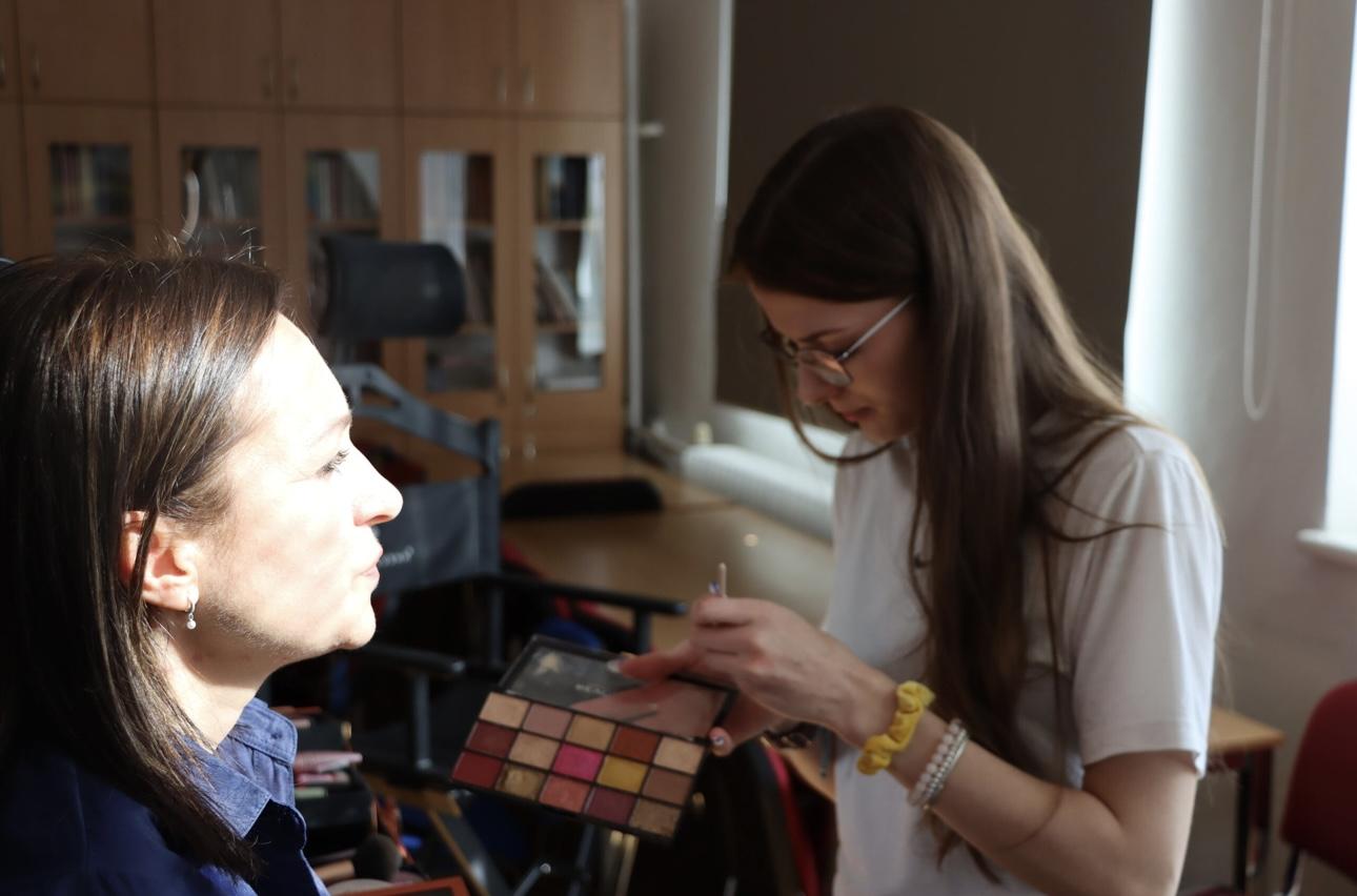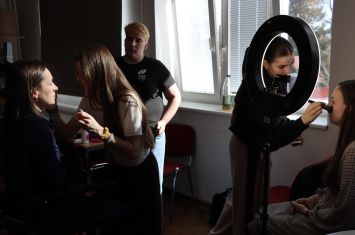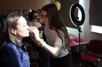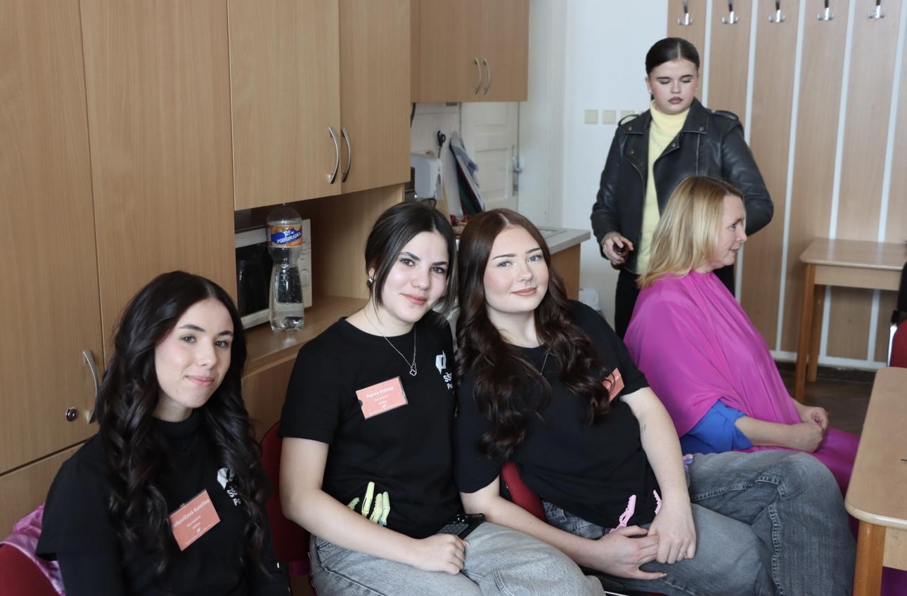 Protože pedagogický sbor čekalo focení se na školní webové stránky, úkolem našich žáků bylo zařídit, aby se každý pedagog, který těchto služeb využil, mohl nejen na fotografii, ale už i při samotném focení, cítit krásný a upravený.