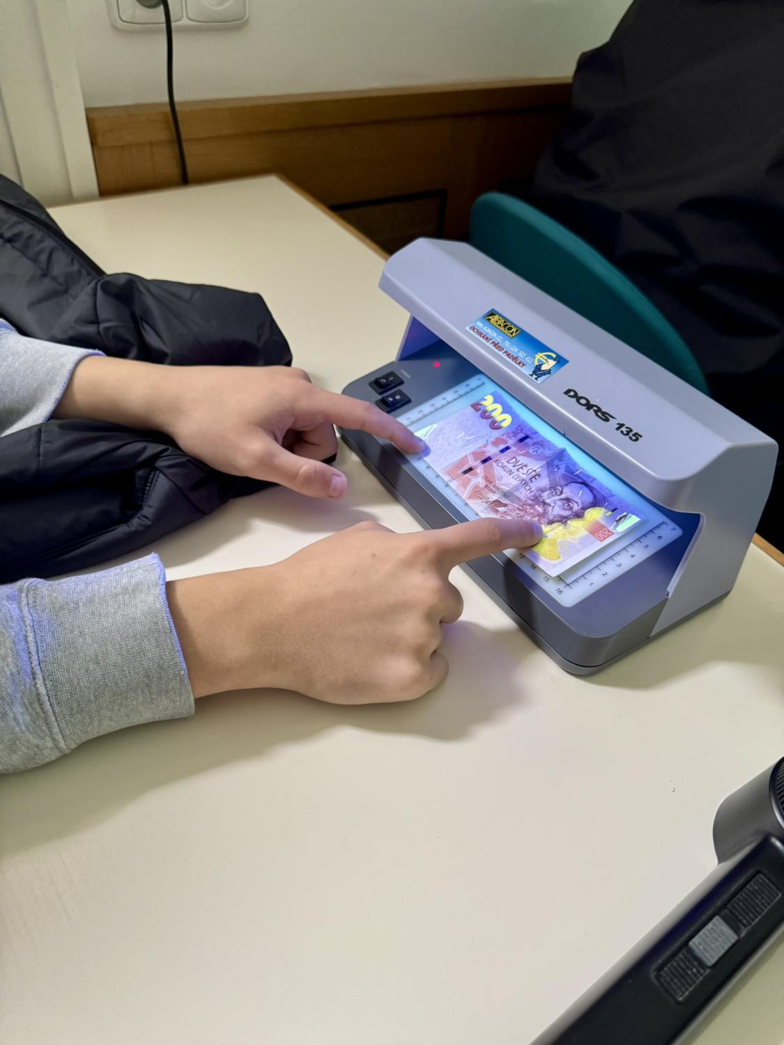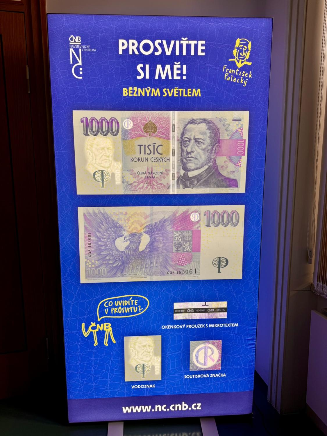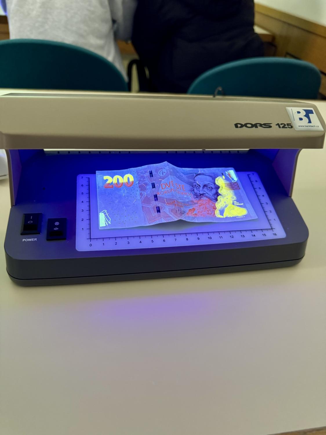 Od průvodce jsme se dozvěděli zajímavé informace o historii budovy, o historii bankovnictví a peněz, zhlédli jsme edukační video vytvořené pro účely vzdělávání studentů a pomocí speciálních lamp jsme si ověřili pravost bankovek v našich peněženkách.